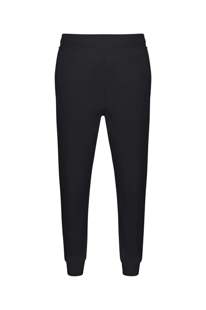 Nedeformovatelný pas a lemy nohavic z žebrovaného úpletu 2x1 s elastanem