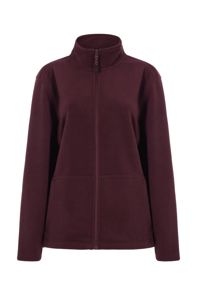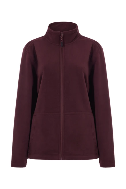 DÁMSKÁ polar fleece bunda. Polar Fleece. 100% polyester. 280 g/m². Vysoký límec. Měkký polar fleece, pohodlný a teplý. Vynikající výsledky v testech odolnosti proti žmolkování. Kompletní obrácený zip s plastovým tahákem. Klokaní kapsa s jemným vázáním. Zesílená rybí kost vnitřní páska kolem krku. Slim fit.