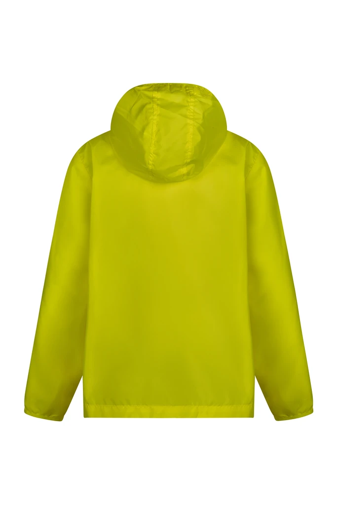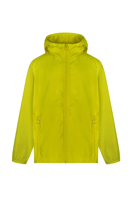 DĚTSKÁ Větrovka. Taft. 100% polyester. 70 g/m². Odpuzovač vody. Skládací na sebe do levé kapsy. Celopřední obrácený zip. 2x boční kapsa na obrácený zip s tahákem. Elastické manžety tón v tónu a obrys kapuce. Lemované dno.
