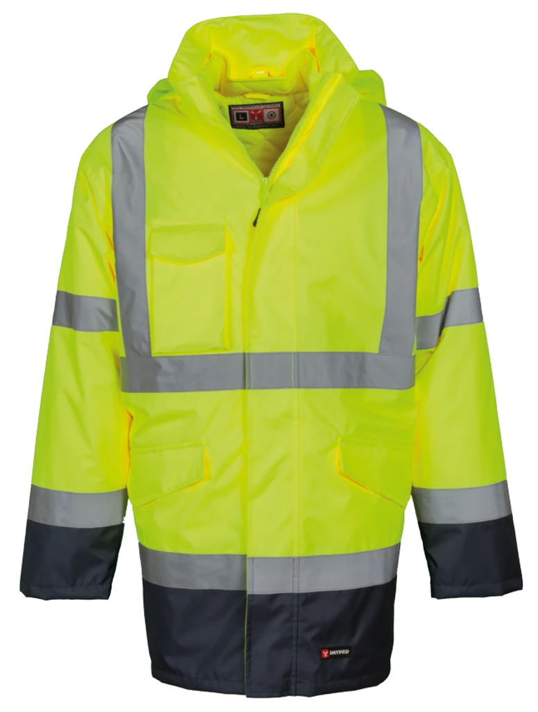 Vysoká viditelnost, nepodšitá vnější bunda, po celé délce zip, skrytá kapuce, 2 přední kapsy s klopou, kapsa na mobilní telefon, vnitřní kapsa na suchý zip. Oddělitelná vnitřní bunda, vycpaná, odnímatelné rukávy, elastické žebrované manžety, tepelně utěsněné švy, dvě přední kapsy se zapínáním na zip, vnitřní kapsa se zipem