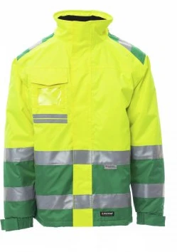 Vysoká viditelnost, 3M reflexní pruhy, plastový zip po celé délce, kovový jezdec, přes zip klopa na suchý zip, elastické manžety, 2 skryté přední kapsy, náprsní kapsa se jmenovku, vatová vycpávka, fleece na vnitřku límce, vnitřní kapsa, tepelně lepené švy