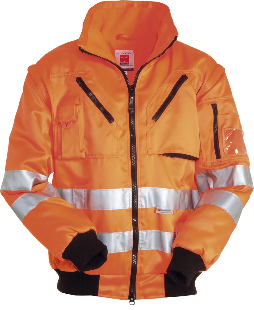 Vysoká viditelnost, 3M reflexní pruhy, 8 mm široký plastový zip s dvojitým kovovým jezdcem, elastické manžety a spodní lem, 2 přední kapsy na zip, 2 náprsní kapsy na zip, kapsa na mobilní telefon, multifunkční kapsa na rukávu, vnitřní kapsa, přes zip snadný přístup pro vytvoření potisku nebo výšivky