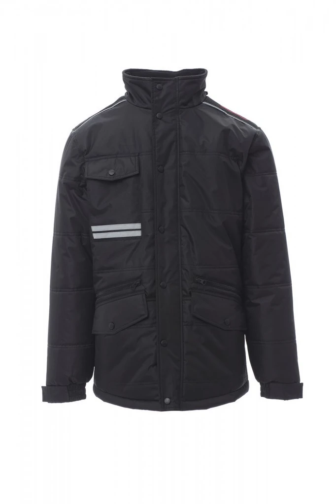 Lehká bunda ve 3/4 délce, zapínání na plastový zip (8mm) s kovovým jezdcem, který je skrytý pod klopou s plastovými knoflíky. Tvarovaná zadní část s kapucí v límci, dvě vnější kapsy "LOCK SYSTEM", dvě kapsy na zip, šikmé kapsy pro snadný přístup, jedna kapsa na hrudi na smartphone a upínací kroužek na jmenovku, reflexní pruhy na kapse a na zádech. Vnitřní strana zateplená, s kontrastním flísovým lemem na zádech a límci, jedna vnitřní kapsa, vnitřní zip pro snadnější potisk a vyšívání