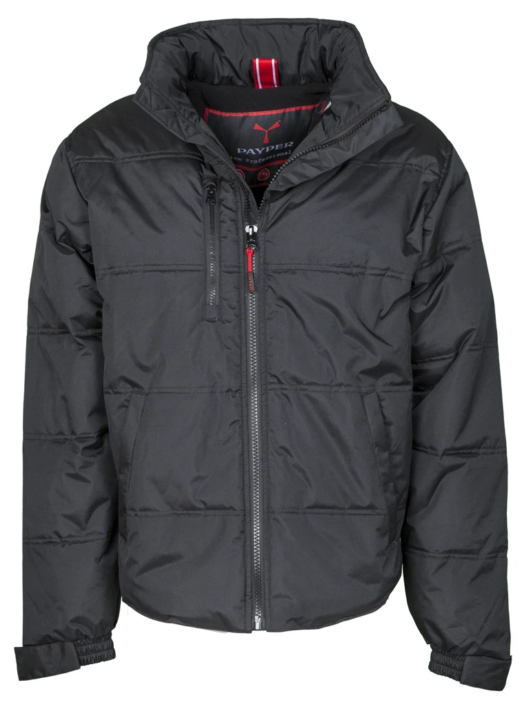 8 mm široký plastový zip po celé délce, kovový jezdec, nastavitelné manžety, 2 boční kapsy na zip, kapsa na hrudi, kapuce schovaná v límci, vatová vycpávka, kontrastní podšívka z fleecu