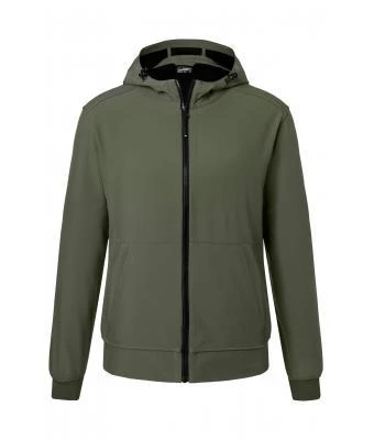 Kapuce se stahovací šňůrkou, dvouvrstvý softshell s kontrastní podšívkou ze síťoviny, elastický pas a manžety rukávů, odolnost vůči vodě a nečistotám díky BIONIC-FINISH®ECO, našitá klokaní kapsa na zip, vnitřní kapsa, zip YKK po celé délce.