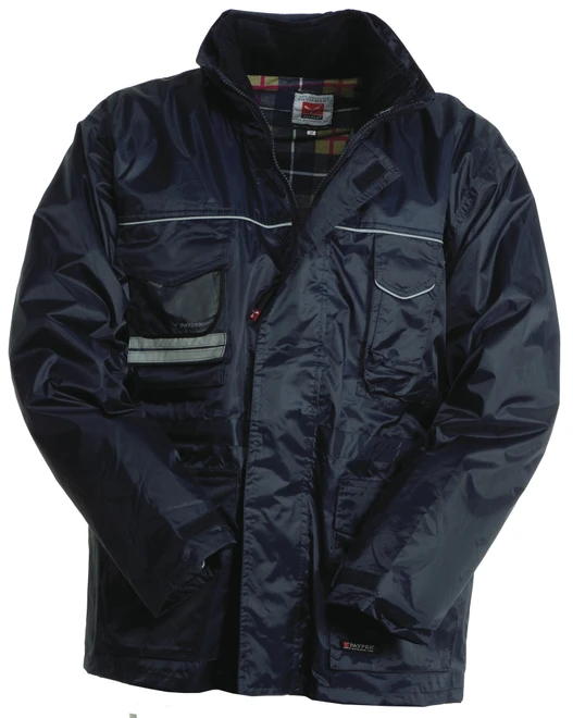 Vnější bunda s předními i zadními reflexními znaky, kapuce schovaná v límci, 4 kapsy (1 kapsa průhledná, 1 kapsa na mobilní telefon), odepínací vnitřní bunda s 2 kapsami, odepínací rukávy, podšívka z látky ve skotském vzoru
