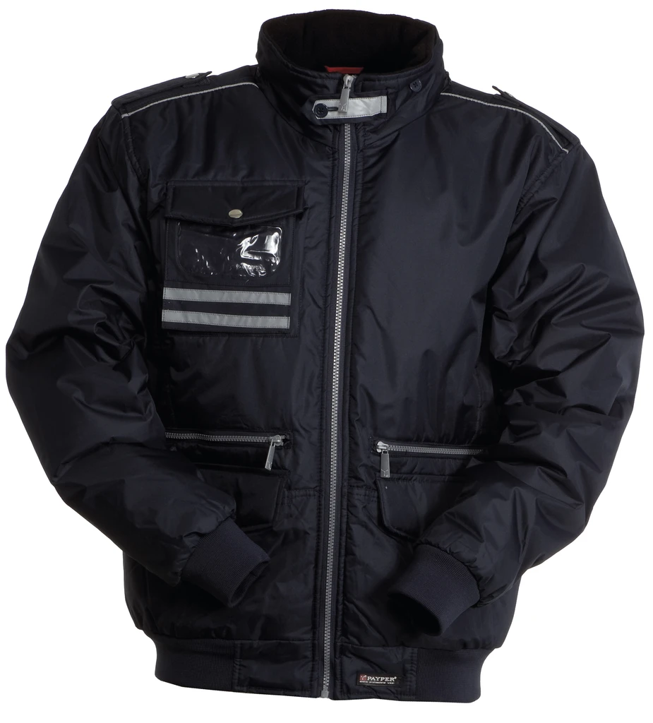 Plastový zip po celé délce, kovový jezdec, kapuce schovaná v límci, žebrované manžety a spodní lem, 2 kapsy se speciálním zavíracím systémem, 2 kapsy na zip, 1 průhledná kapsa, vnitřní kapsa, reflexní lemování na ramenou, 2 reflexní proužky na hrudi, vatová vycpávka, podšívka ve stříbrné barvě, podšívka na límci a zádech z fleecu