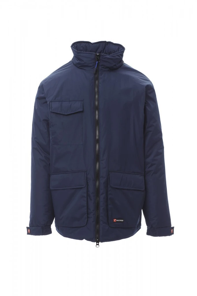 Lehká bunda ve 3/4 délce, plastový zip (8mm) s kovovým jezdcem, kapuce v límci, elastické konce rukávů s nastavitelnými páskami v oblasti zápěstí, dvě velké přední kapsy "LOCK SYSTEM", dvě postranní kapsy, jedna kapsa na hrudi na mobilní telefon. Vnitřní strana zateplená, zip pro snadnější potisk a vyšívání