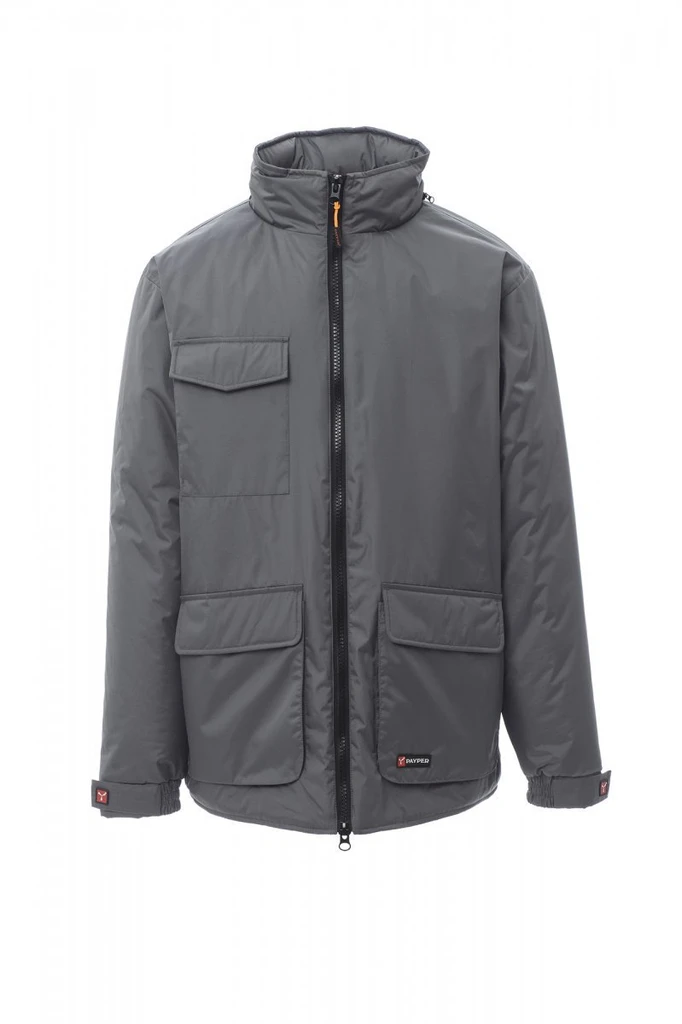 Lehká bunda ve 3/4 délce, plastový zip (8mm) s kovovým jezdcem, kapuce v límci, elastické konce rukávů s nastavitelnými páskami v oblasti zápěstí, dvě velké přední kapsy "LOCK SYSTEM", dvě postranní kapsy, jedna kapsa na hrudi na mobilní telefon. Vnitřní strana zateplená, zip pro snadnější potisk a vyšívání