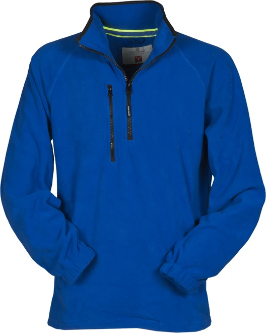 Do 1/2 délky černý plastový zip 8 mm široký, raglánové rukávy, stahovací šňůrka v pase, elastické manžety, 2 kapsy se skrytým zipem, 1 přední kapsa na hrudi, za krkem výztužná páska v kontrastní barvě, vyztužené švy