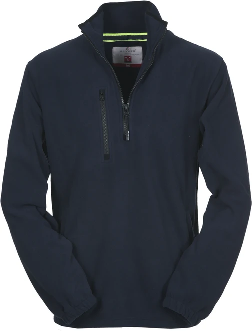 Do 1/2 délky černý plastový zip 8 mm široký, raglánové rukávy, elastické manžety a pas, 2 kapsy se skrytým zipem, 1 přední kapsa na hrudi, za krkem výztužná páska v kontrastní barvě, vyztužené švy