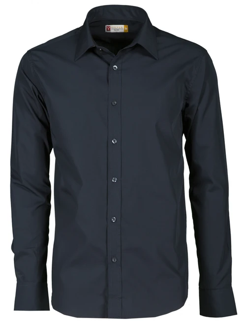 Materiál nenáročný na údržbu, dlouhý rukáv, mírně zeštíhlená, italský límeček, manžety s 2 knoflíky a knoflíkovou dírkou, oboustranně prošitá léga s barevně sladěnými knoflíky, náprsní kapsa, zádové sedlo a svislé záševky