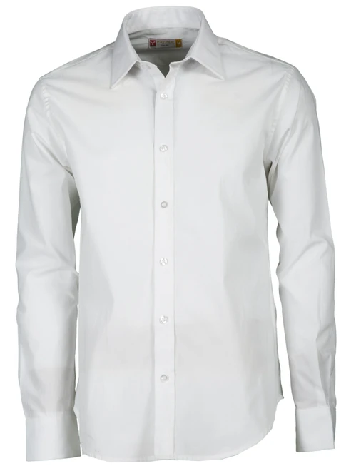Materiál nenáročný na údržbu, dlouhý rukáv, mírně zeštíhlená, italský límeček, manžety s 2 knoflíky a knoflíkovou dírkou, oboustranně prošitá léga s barevně sladěnými knoflíky, náprsní kapsa, zádové sedlo a svislé záševky