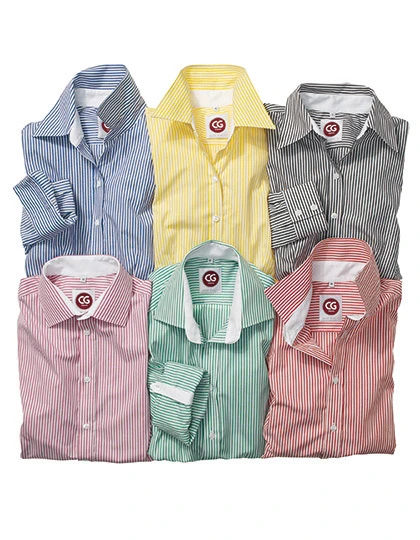 Košile s proužky v barvě příze, stálobarevná, z nežehlivé směsové tkaniny, rukávy lze vyhrnout a zafixovat bílou patkou, bílý vnitřní límec, lze prát na 60°C, vhodné pro průmyslové praní.