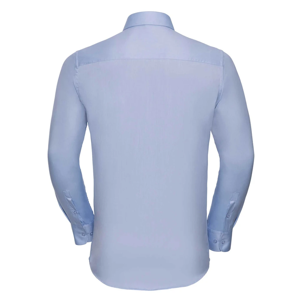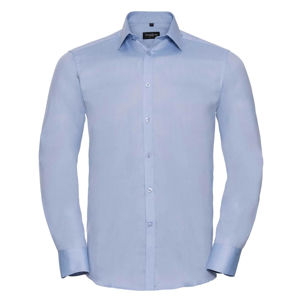 Gramáž: 130 g/m² (White: 125 g/m²) ; Materiál: 84% bavlna, 16% polyester; Pánská košile ze směsového materiálu; Klasický materiál, dlouhý rukáv, krátký límec, úzká léga, zaoblené manžety, vypasovaná, snadné ošetřování. Certifikáty: STANDARD 100 by OEKO-TEX®; WRAP