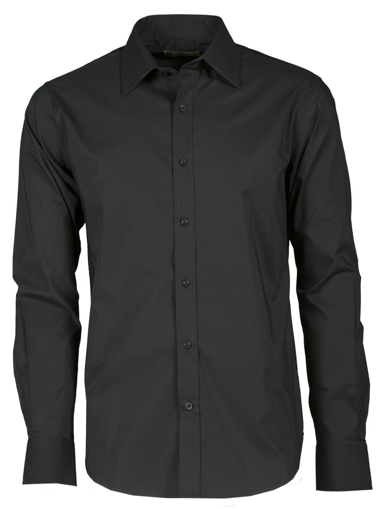 Materiál nenáročný na údržbu, mírně zeštíhlená, dlouhý rukáv, italský límec, manžety s 2 knoflíky a knoflíkovou dírkou, oboustranně prošitá léga s barevně sladěnými knoflíky, náprsní kapsa, zádové sedlo a svislé záševky