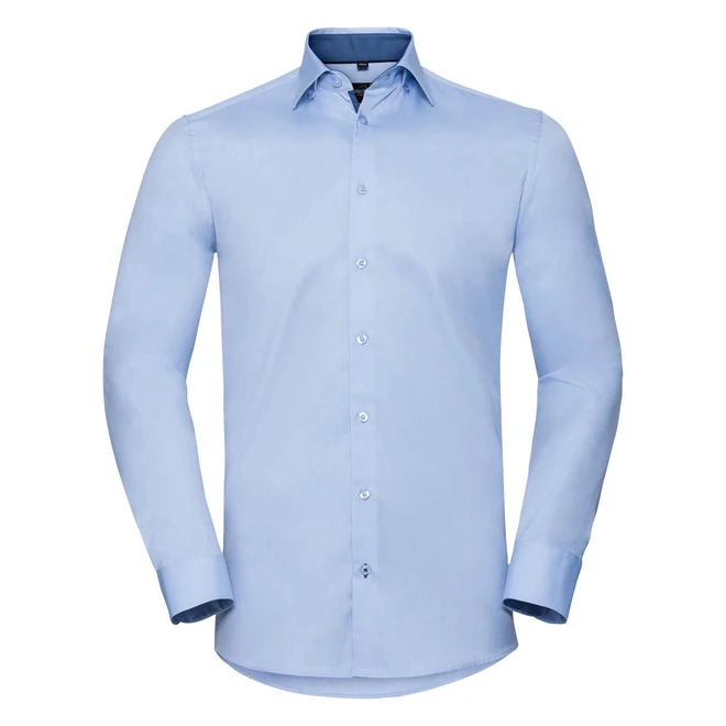 Gramáž: 130 g/m² (White: 125 g/m²); Materiál: 84% bavlna, 16% polyester; Pánská košile s kontrastním proužkem; Speciální úprava "Easy Care". Límeček lze připnout dole pomocí knoflíčků, kontrastní barva na vnitřní straně límce a manžet, kontrastní barva na spodní straně légy na knoflíky, manžety na 2 knoflíky, zaoblený spodní lem, přiléhavý střih, zužující švy na zádech; Certifikáty: STANDARD 100 by OEKO-TEX®; WRAP