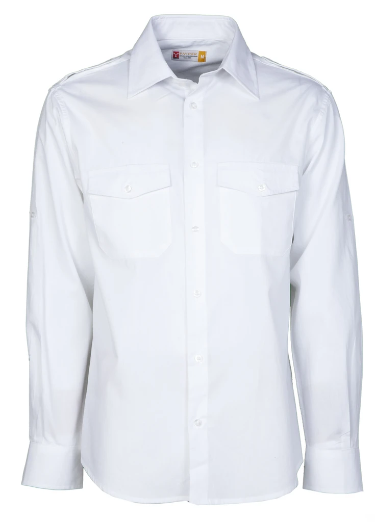Mírně zeštíhlená, italský límeček, manžety s 2 knoflíky a knoflíkovou dírkou, oboustranně prošitá léga s barevně sladěnými knoflíky a červenými knoflíkovými dírkami (kromě bílého provedení), tvarované sedlo vpředu (kromě bílého provedení), nárameníky, dvě náprsní kapsy s klopou, vyhrnovací rukávy s knoflíkem a poutkem