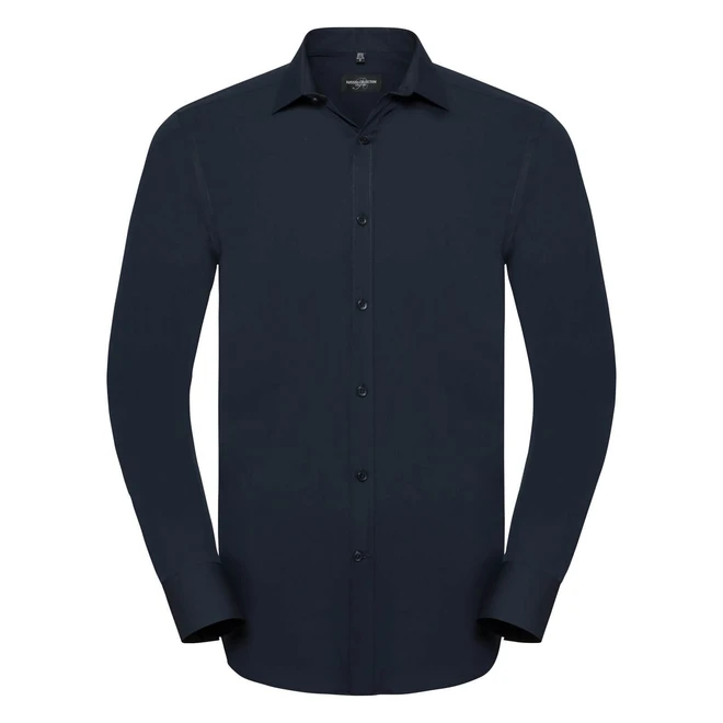 Gramáž: 130 g/m² (White: 125 g/m²); Materiál: 75% bavlna, 25% Elastomultiester (vlákno LycraA® T400®) popelín; Pánská košile Ultimate Stretch s dlouhými rukávy; Udržuje tvar, trvanlivý materiál, dobře odvádí vlhkost, krátký límec, úzká léga, čtvercové manžety (možnost zapínání na manžetový knoflík), záševky vzadu, vypasovaný střih; Certifikáty: STANDARD 100 by OEKO-TEX®; WRAP