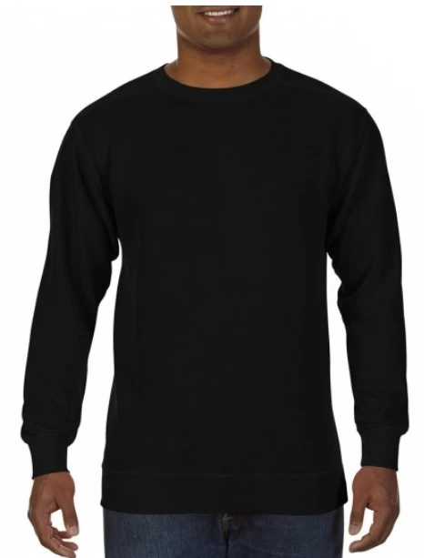 Měkká předepraná barvená tkanina, vyztužený krk, vsazené rukávy, 1x1 žebrovaný límec, manžety a pas, dvojitě prošitý límec, průramky, manžety a pas.