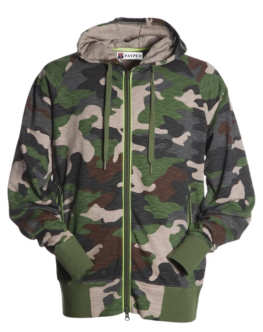 Kontrastní zip z nylonu po celé délce, raglánové rukávy, kapuce s kontrastními šňůrkami, kontrastní vnitřní výztužná páska, elastické manžety a spodní lem, dvě přední kapsy na zip