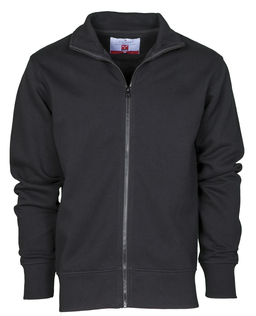 Plastový zip po celé délce, zip ve stejné barvě jako mikina, kovový jezdec, elastické manžety a spodní lem, vyztužené švy, výztužná páska za krkem ve stejné barvě jako mikina