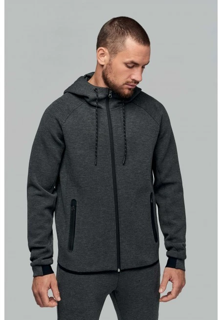Velmi pohodlný materiál, zapínání na zip, 2 přední kapsy na zip, v kapuci dvojbarevná stahovací šňůrka s plastovými koncovkami, kolem zápěstí elastická vsadka.