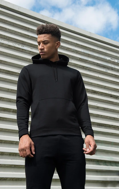 Dvojité prošití detailů, sportovní střih, kapuce ze tří panelů a z dvojité vrstvy látky, šňůrky ve stejné barvě jako mikina, klokaní kapsa se skrytým vývodem na sluchátka, jednoduchá změna značky.