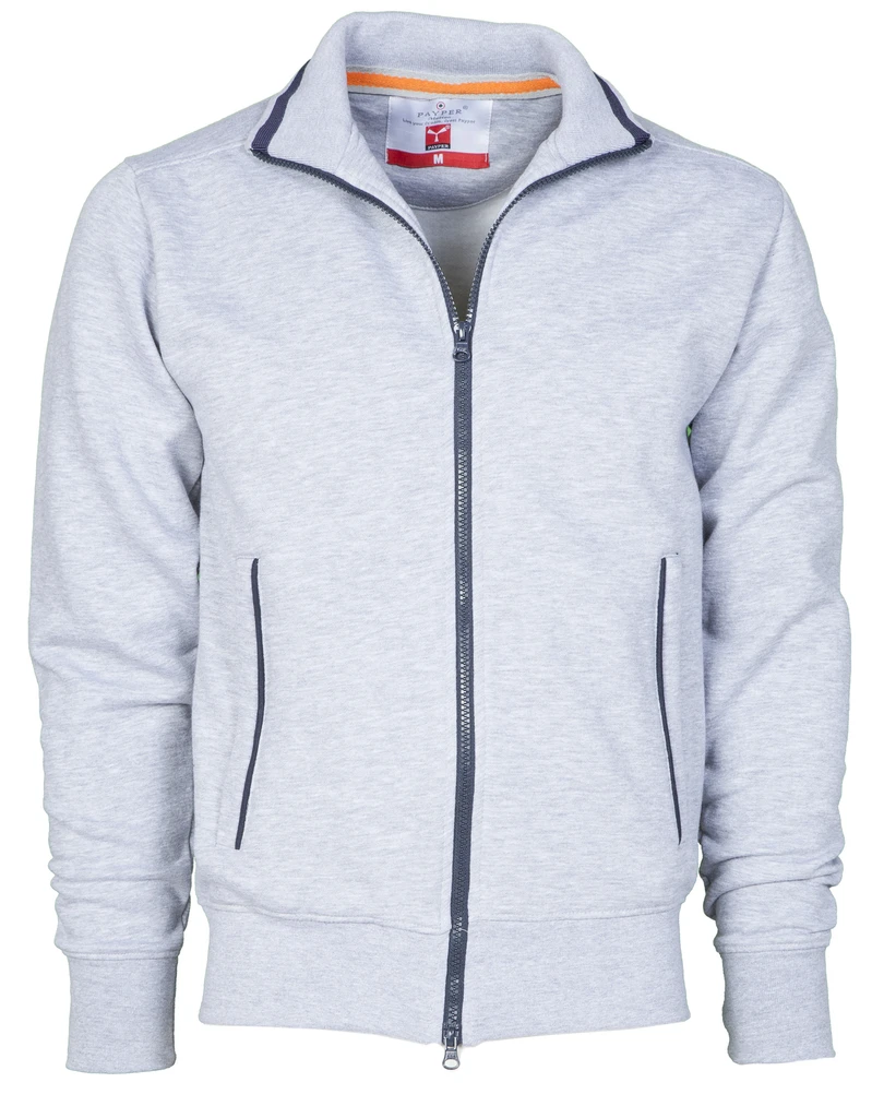 Plastový kontrastní zip po celé délce, dvojcestný kovový jezdec, kontrastní zip na žebrovaném límci a kapsách na zip, vsazené rukávy, vyztužené švy, elastické manžety a spodní lem