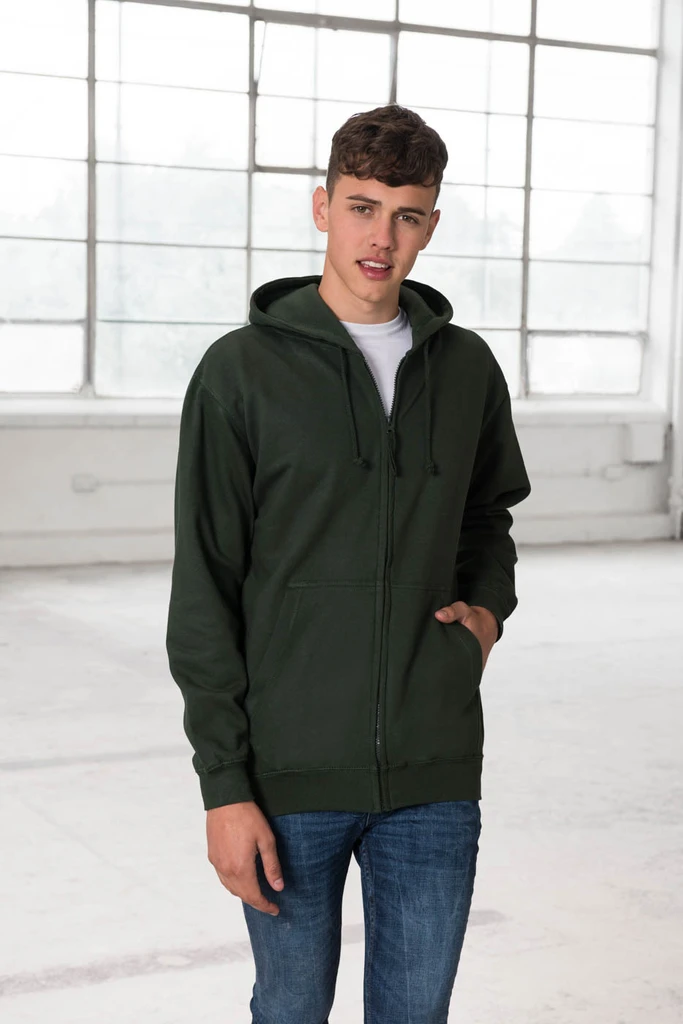 Dvojité prošití detailů, zip po celé délce, kapuce z dvojité vrstvy látky, šňůrky ve stejné barvě jako mikina, výztužná páska za krkem ve stejné barvě jako mikina, klokaní kapsa se skrytým vývodem na sluchátka, žebrované manžety a spodní lem, jednoduchá změna značky, ideální povrch pro potisk.