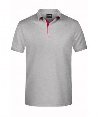 Kvalitní piké, pletený límec a manžety rukávů, kontrastní pruhy na límci, léga v kontrastní barvě, knoflíčky tón v tónu, boční rozparky, zapínání na 3 knoflíčky.