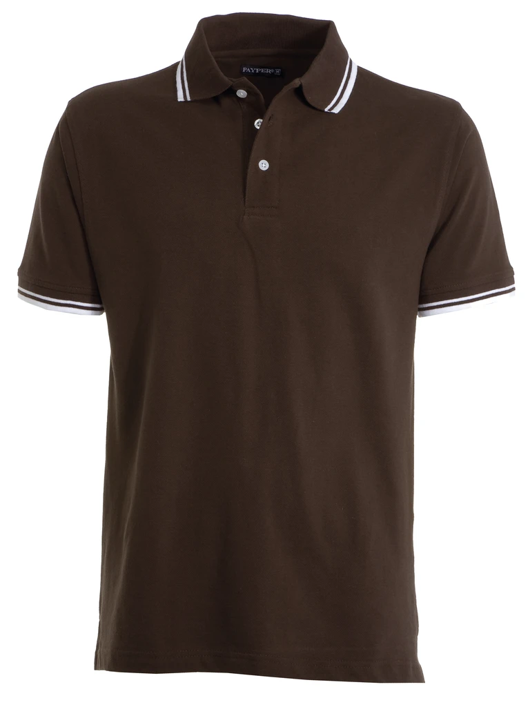 Krátký rukáv, zapínání na 3 bílé knoflíky, žebrování na límci a manžetách, kontrastní proužek na límci a manžetách, boční rozparky s vyztuženými švy, elastické švy, výztužná páska za krkem