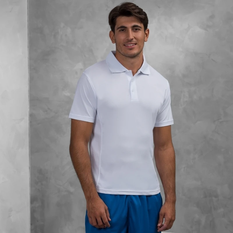 Vsazené rukávy, léga s třemi knoflíky, boční panely, boční rozparky, výztužná páska za krkem, knoflíky ve stejné barvě jako tričko, plochý pletený žebrovaný límec, dvojité prošití detailů, jednoduchá změna značky, UPF 30+ UV ochrana. Vylepšený materiál SuperCool™ se skvělými vlastnostmi a antibakteriální úpravou.