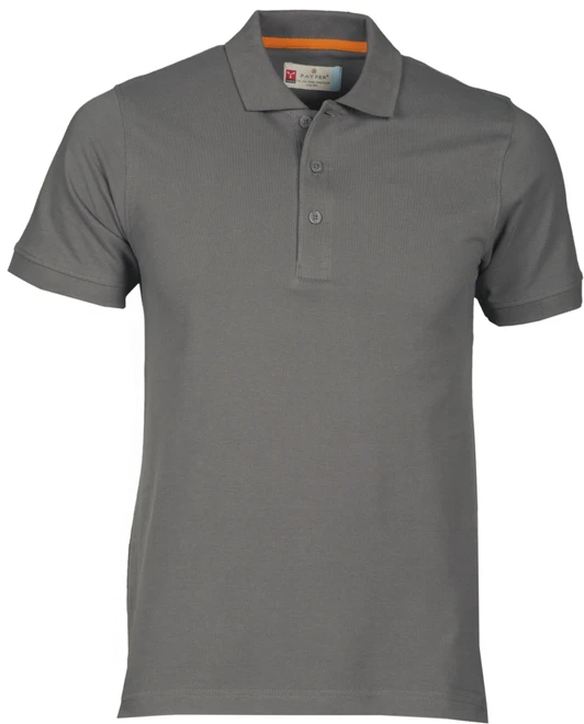 Krátký rukáv, zapínání na 3 knoflíky v perleťovém tónu, knoflíky ve stejné barvě jako polokošile, žebrování na límci a manžetách, boční rozparky, elastické švy, kontrastní výztužná páska za krkem