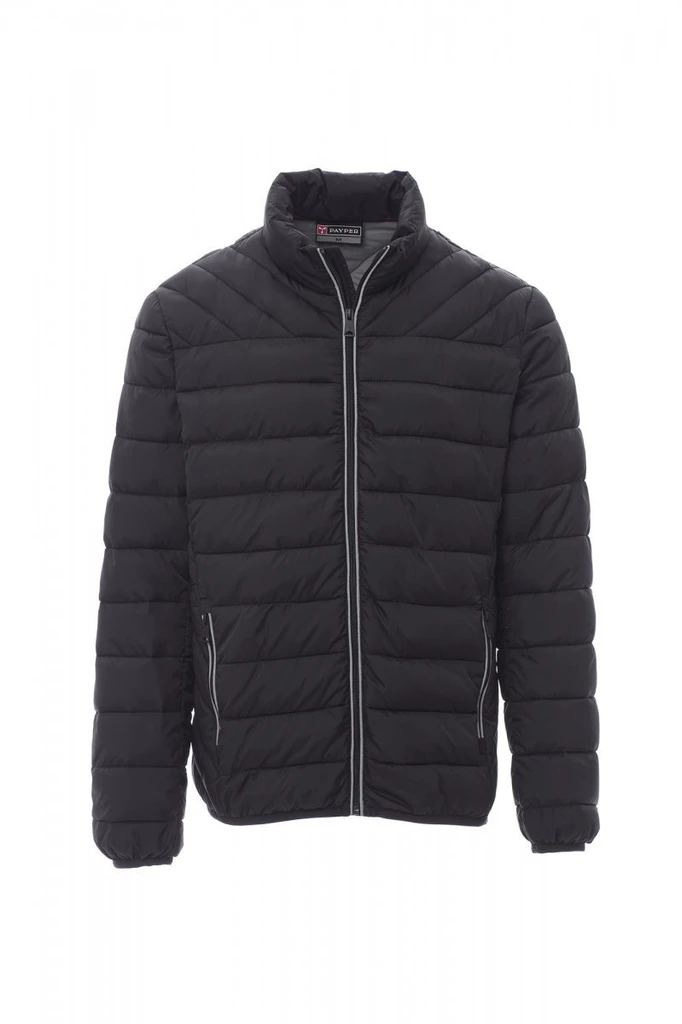 Lehká větrovka, zapínání na plastový zip (5mm) s kovovým jezdcem. Úzký elastický lem na manžetách a v pase, dvě vnější kapsy. Vnitřní strana zateplená výplní z polyesteru (efekt péřové náplně), dvě kapsy