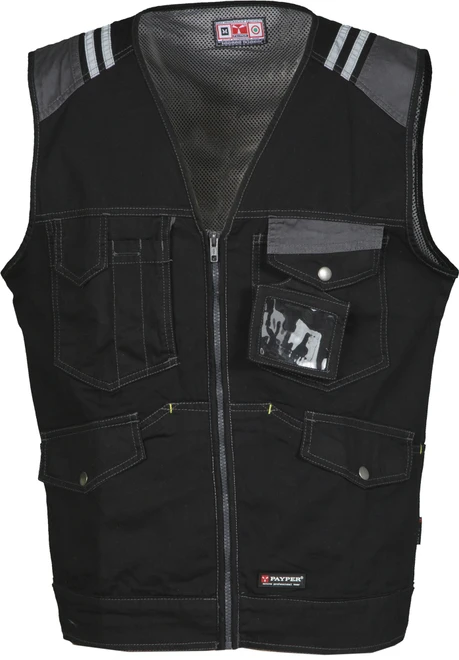 V džínovém stylu, vypasovaný střih, přední zapínání na zip, 2 přední klokaní kapsy se speciálním zavíracím systémem na klopu a knoflík, 2 náprsní kapsy, odnímatelná jmenovka, držák na mobilní telefon, reflexní lemování na zádech, reflexní proužky na ramenou, rychleschnoucí podšívka.