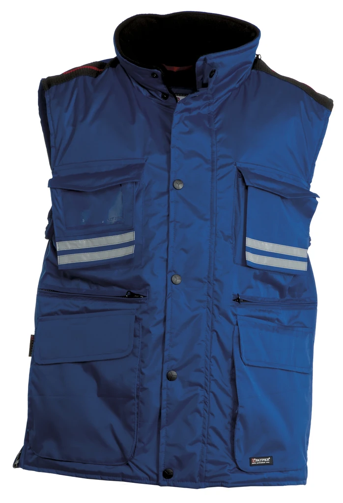 8 mm široký plastový zip po celé délce, kovový jezdec, klopa s cvoky po celé délce, odepínací kapuce, nastavitelné manžety, reflexní proužky vpředu i vzadu, boční ventilační otvory na zip, 9 vnějších kapes - 2 se speciálním zavíracím systémem, 2 na zip a s vyztuženým vnitřkem, 1 kapsa průhledná, vatová vycpávka, podšívka na límci z microfleecu