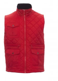 Prošívaná vesta, 8 mm široký plastový zip po celé délce, kovový jezdec, boční průduchy na knoflík, 5 vnějších kapes - 2 se speciálním zavíracím systémem, vnitřní kapsa, vatová vycpávka, podšívka na límci z žebrovaného manšestru