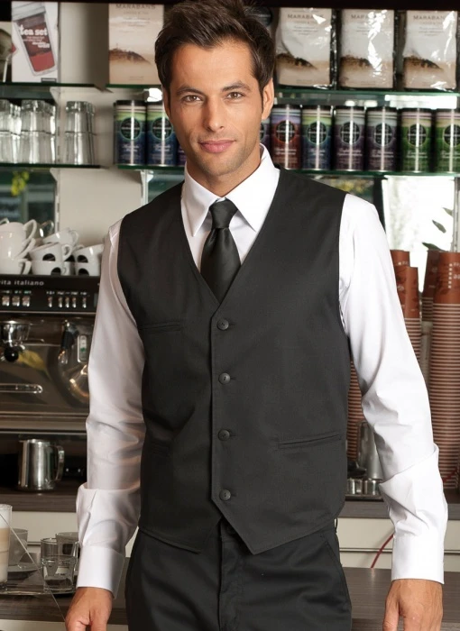 Rovný střih, zadní strana vesty se dá regulovat páskem, který je umístěn v pase, 3 kapsy, vnitřní kapsa, lze prát na 95°C, snadné ošetřování, stálobarevnost.