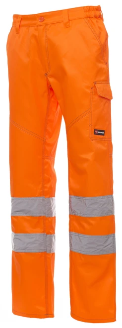 Vysoká viditelnost, vhodné pro všechna roční období, reflexní pruhy, elastické boky, poutka na pásek, zapínání na zip a knoflík, 2 přední kapsy, boční kapsa, kapsa na metr, 2 zadní kapsy (1 otevřená, 1 s klopou na suchý zip), kontrastní prošití, trojité švy v rozkroku a na vnitřní nohavici