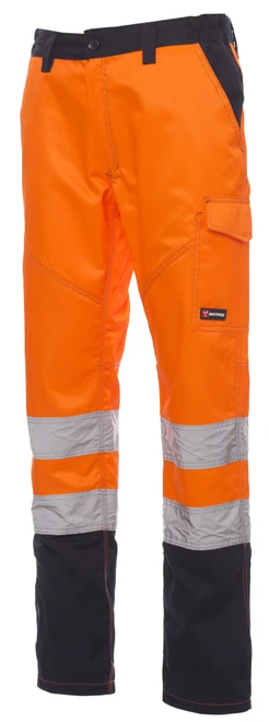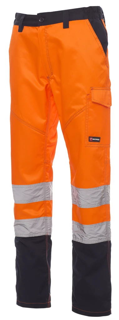 Vysoká viditelnost, vhodné pro všechna roční období, reflexní pruhy, elastické boky, poutka na pásek, zapínání na zip a knoflík, 2 přední kapsy, boční kapsa, kapsa na metr, 2 zadní kapsy (1 otevřená, 1 s klopou na suchý zip), kontrastní prošití, trojité švy v rozkroku a na vnitřní nohavici