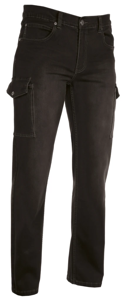 5 kapes + 2 prostorné kapsy na bocích s klopou, zapínání na kovový zip a knoflík, poutka na pásek v pase, nošený vybledlý vzhled, kontrastní švy, dvojité švy na vnitřní straně nohavic, rovný střih