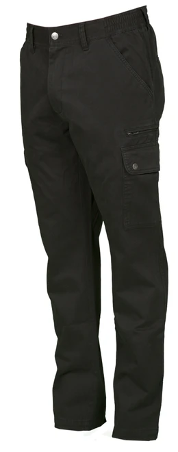 Lemované zimní kalhoty, elastické řasení na bocích, poutka na pásek, zapínání na zip a knoflík, 2 klasické přední kapsy, 2 boční kapsy s klopou, na levé nohavici kapsa na zip, 2 zadní kapsy na knoflík