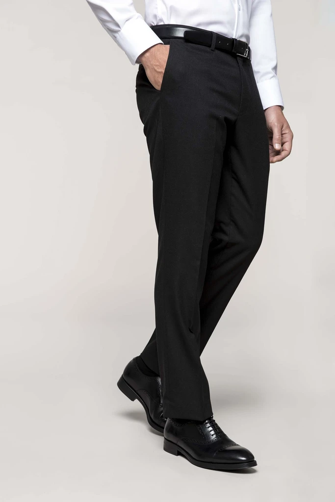 Střih "slim fit", 2 přední kapsy, 2 zadní kapsy s knoflíčkem, zapínání na zip, poutka na pásek, spodek nohavic bez lemu - lze jednoduše prodloužit nebo zkrátit.