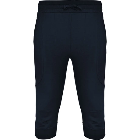 Široký elastický pas se stahovací šňůrkou, lemované boční kapsy, zadní kapsa, protáhlé boční panely v kulatém tvaru, prošívání na kolenou, žebrovaný spodní okraj, odnímatelná cedulka.