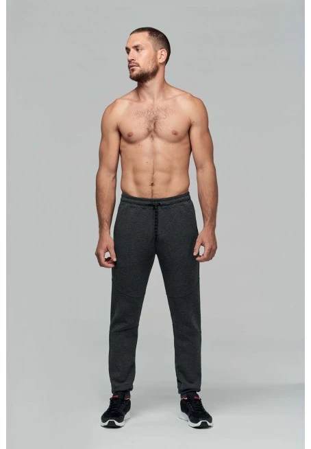 Velmi pohodlný materiál, elastický pas s dvojbarevnou šňůrkou s plastovými koncovkami, 2 přední kapsy s podšívkou z 65% polyesteru a 35% bavlny, zadní kapsa, moderní střih slim fit s kolenními záložkami.