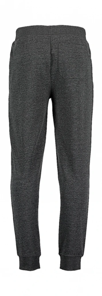 Elastický žebrovaný pas s plochou šňůrkou ze stejné barvy, postranní kapsy, kapsa na zadní straně, dvouřadé žebrování manžet u kotníku, odstranitelný štítek, zúžený střih.