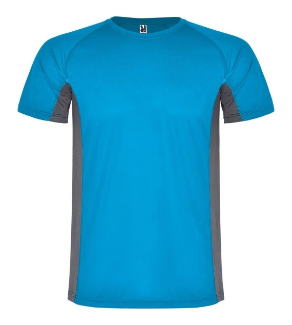 Krátké raglánové rukávy, kulatý výstřih, zpevněné švy na průkrčníku, kombinace dvou polyesterových tkanin, mikroperforovaný materiál na bocích a průramcích, funkční materiál, pohodlné a snadno přizpůsobivé, prodyšný rychleschnoucí materiál, odstranitelná cedulka, vhodné pro potisk sublimací, dostupné i v dětských velikostech.