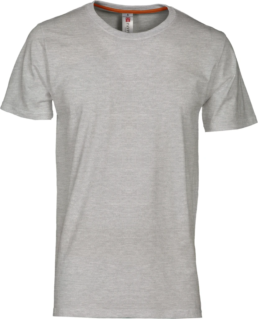 Krátký rukáv, kulatý výstřih, 15 mm široký lem okolo výstřihu s příměsí spandexu, kontrastní vnitřní výztužná páska za krkem, elastické švy, boční švy