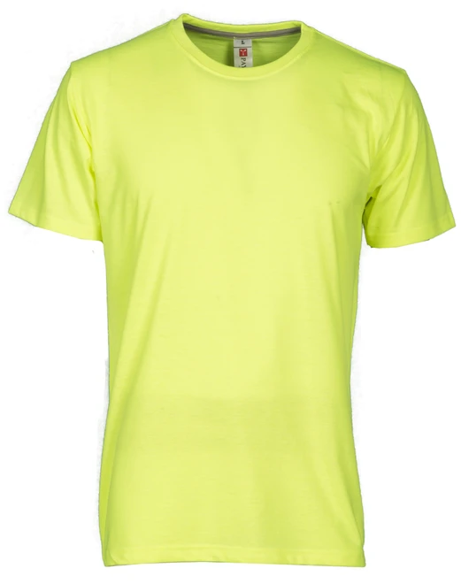 Materiál: 35% bavlna, 65% polyester; Krátký rukáv, kulatý výstřih, 15 mm široký lem okolo výstřihu s příměsí spandexu, kontrastní vnitřní výztužná páska za krkem, trubicovitý střih